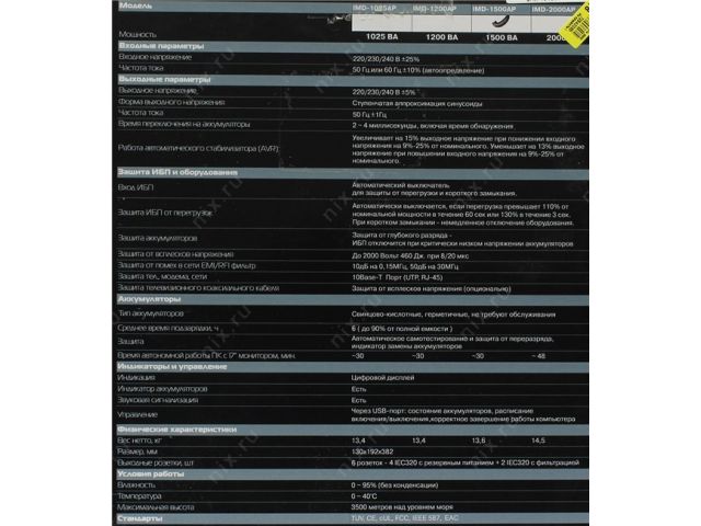 | AVR (Automatic Voltage Regulation - авторегулятор напряжения) | Есть. При отклонении входного напряжения от номинала на величину от 9% до 25% выше/ниже, понижает/повышает на 13% / 15% выходное напряжение. |