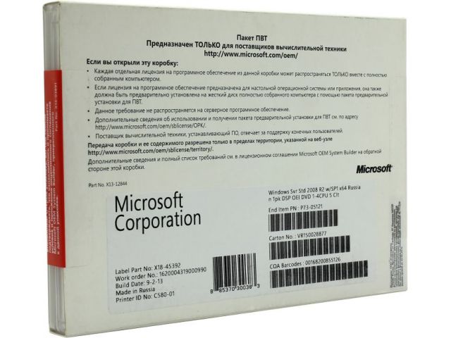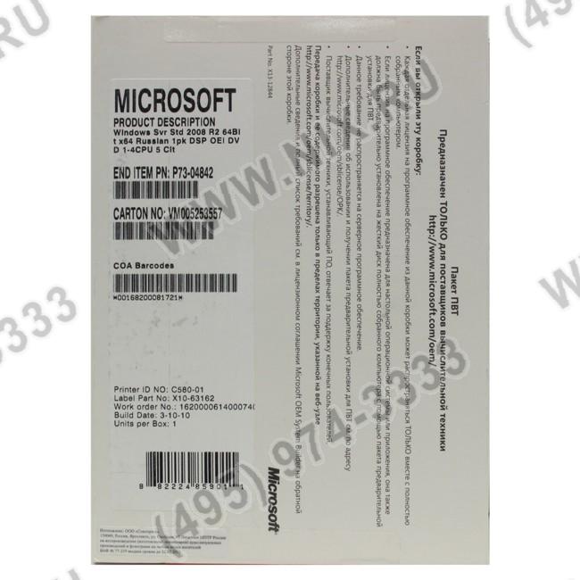 Microsoft Windows Server 2008 R2 64bit Стандартный выпуск Рус.(OEM)  5 клиентов  P73-05121/04842/06437