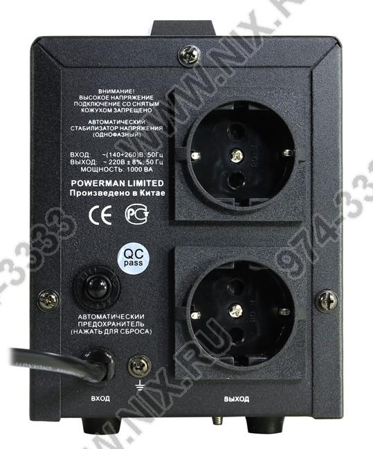 | Стабилизатор напряжения 1000 ВА PowerMan AVS 1000 D 2 розетки евростандарт с заземлением 1.2 метра |
