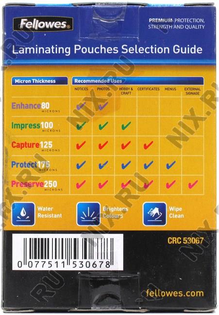 • Fellowes 53067 Пакеты для ламинирования (64x95мм, 125мкм, уп. 100 шт)