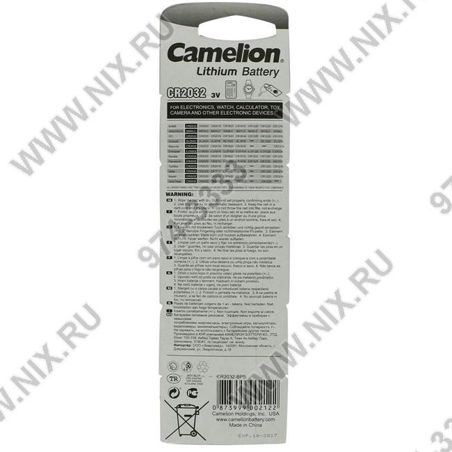 • Camelion CR2032-5 (Li, 3V)  уп. 5 шт