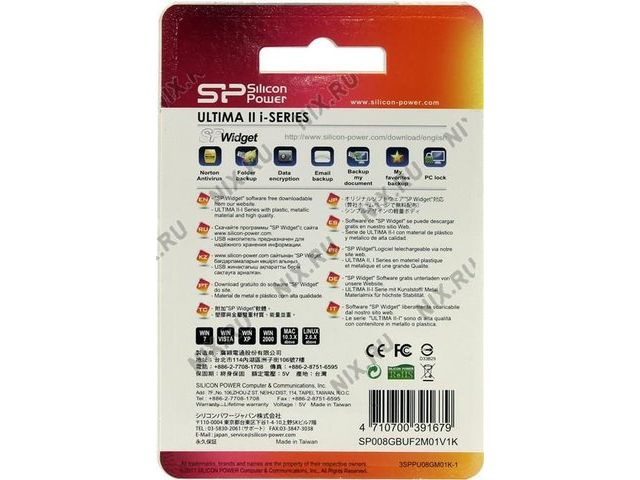 • Silicon Power Ultima-II SP008GBUF2M01V1K USB2.0 Flash Drive 8Gb (RTL)