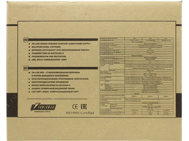| КПД | 86% при максимальной нагрузке при питании от сети; 94% при максимальной нагрузке в Eco-режиме; 84% при максимальной нагрузке при работе от батареи |