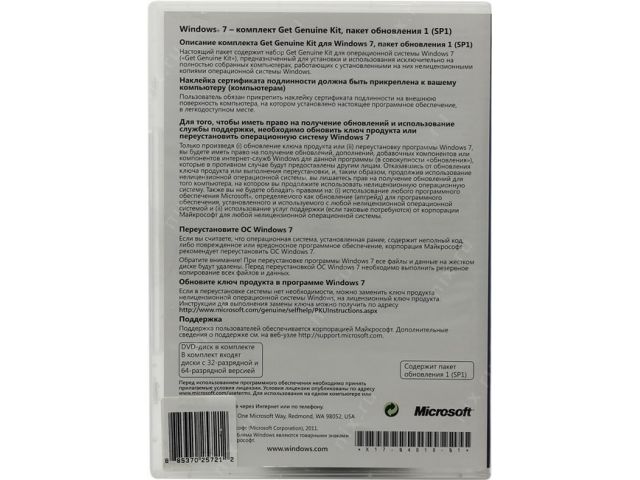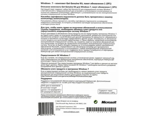 Get Genuine Kit for Windows 7 Pro 32&64-bit License Рус. набор для легализ. операц. сист.  6PC-00024/00009