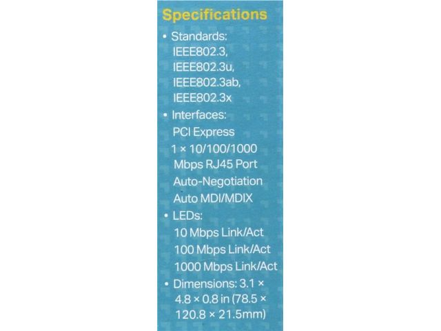 | TP-LINK Сетевая карта 1 Гбит/с (1 x 1 Гбит/с, PCI Express) |