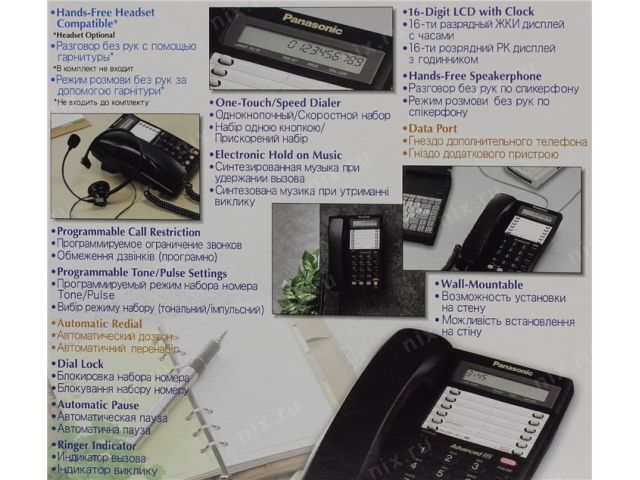 Возможность подключения гарнитурыJack 2.5 мм; рекомендуется использовать гарнитуру KX-TCA89 или KX-TCA94 (приобретаются отдельно)