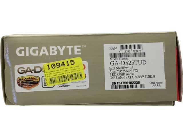 | GIGABYTE GA-D525TUD rev1.5 (AtomD525 CPU onboard) (RTL) <Intel NM10> SVGA+GbLAN SATA Mini-ITX 2DDR3 |