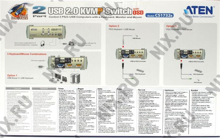 | Комплект поставки | 2 кабеля KVM, конвертер USB - PS/2, кабель для обновления встроенного программного обеспечения |
