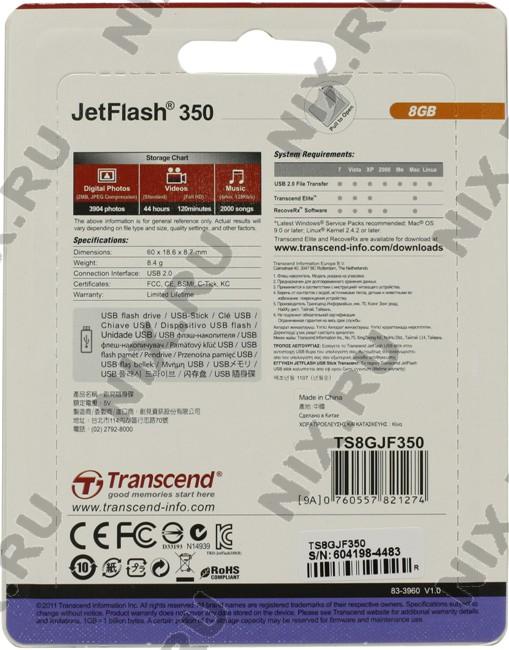 Transcend TS8GJF350 JetFlash 350 USB2.0 Flash Drive 8Gb (RTL)