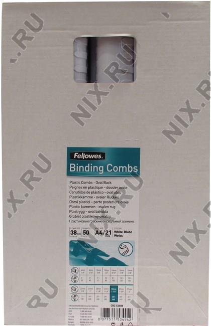 Fellowes 53494 Пластмассовые гребёнки для переплёта (White, A4, 21отв, d=38мм, уп.50шт)