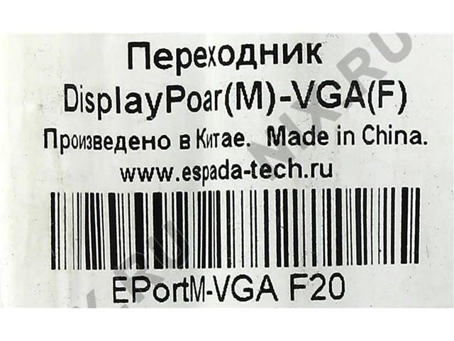 • Espada EPortM-VGA F20  Кабель-адаптер DisplayPort (M)-- VGA(15F)
