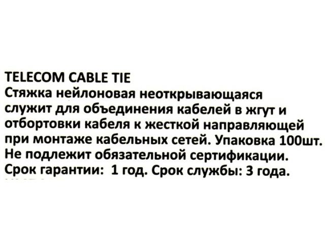 •  CV-300/NYT-300 White Стяжка нейлоновая, неоткрыв. 300 мм, уп-ка 100 шт