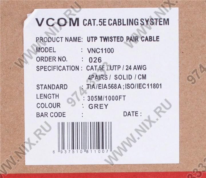 Кабель UTP 4 пары кат.5e бухта 305м VCOM VNC1100