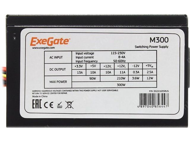 Блок питания ExeGate (ITX)-M300 EX221635RUS 300W SFX (24+4пин) для Exegate MI-2XX