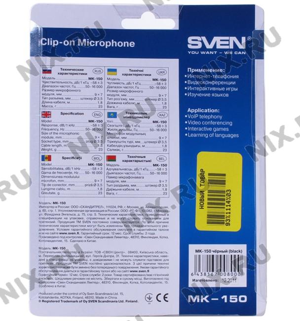 Микрофон SVEN MK-150 Black  (1.8 м, клипса)