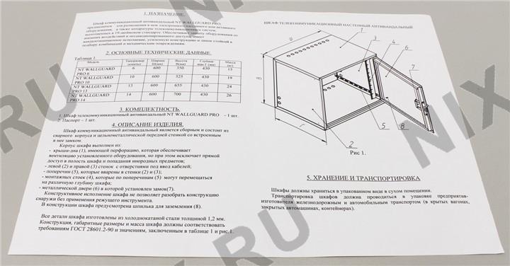 NT WALLGUARD PRO 6 G Шкаф 19 настенный антивандальный, серый, 6U, 600x430, дверь на петлях