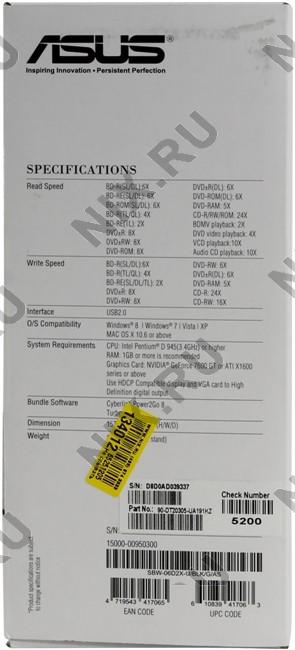 | Время доступа | CD-ROM: 190 мс, DVD-ROM: 190 мс, BD(SL/DL): 300 мс, BD(TL/QL): 450 мс |