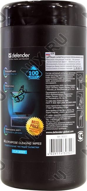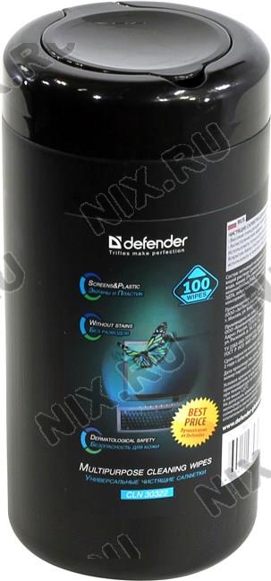 • Defender CLN30322  Влажные чистящие салфетки в пластиковой тубе для экранов всех типов (100шт)