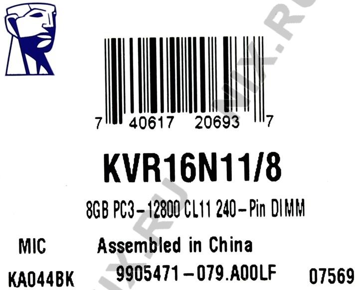 Kingston ValueRAM KVR16N11/8(WP) DDR3 DIMM 8Gb PC3-12800 CL11
