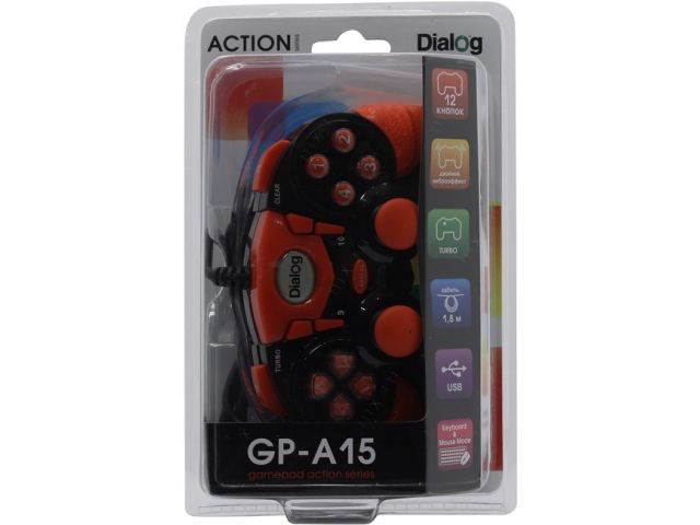 Геймпад Dialog Action GP-A15 Black-Red (Vibration, 12кн, 8 поз.перекл, 2 мини-джойстика, USB)