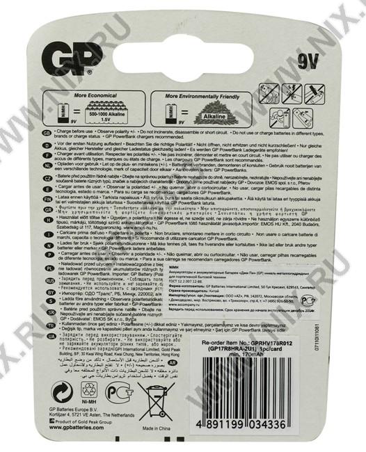 • Аккумулятор GP 17R8H-U1 (8.4V, 170mAh) NiMh, типа Крона
