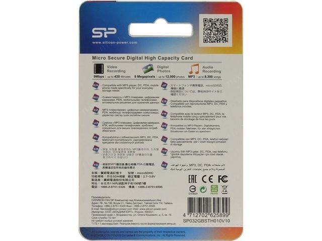• Silicon Power SP032GBSTH010V10 microSDHC Memory Card 32Gb Class10