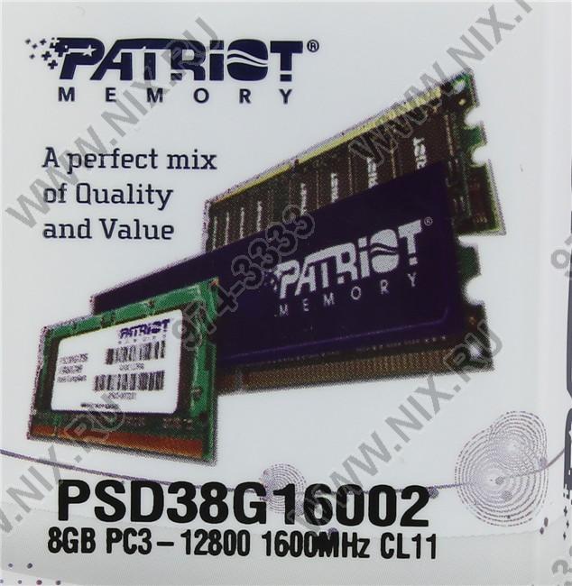 Patriot PSD38G16002 DDR3 DIMM 8Gb PC3-12800 CL11