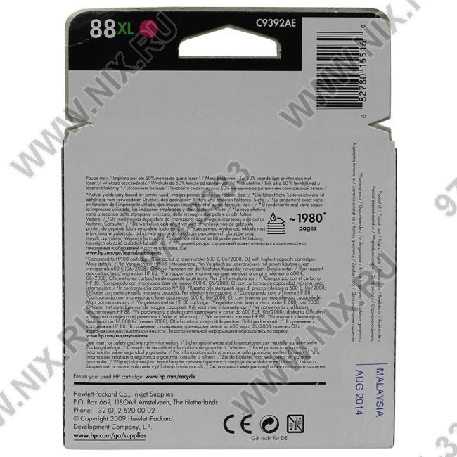Картридж HP C9392AE (№88XL) Magenta для HP Officejet Pro K550/5400/8600, L7480/7580/7590/7680/7780 (повыш.ёмкости)