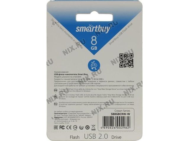 • SmartBuy Crown SB8GBCRW-W USB2.0 Flash Drive 8Gb (RTL)