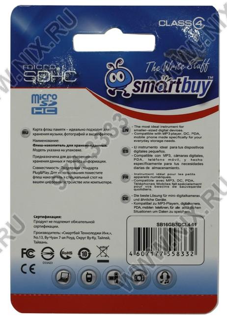 SmartBuy SB16GBSDCL4-01 microSDHC 16Gb Class4 + microSD-- SD Adapter