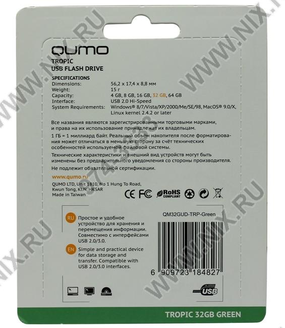 Qumo Tropic QM32GUD-TRP-Green USB2.0 Flash Drive 32Gb (RTL)