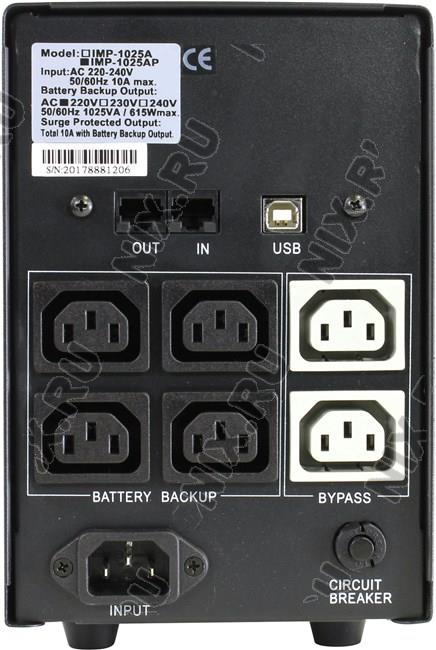 | Источник бесперебойного питания Powercom Back-UPS IMPERIAL, Line-Interactive, 1025VA / 615W, Tower, IEC, USB |