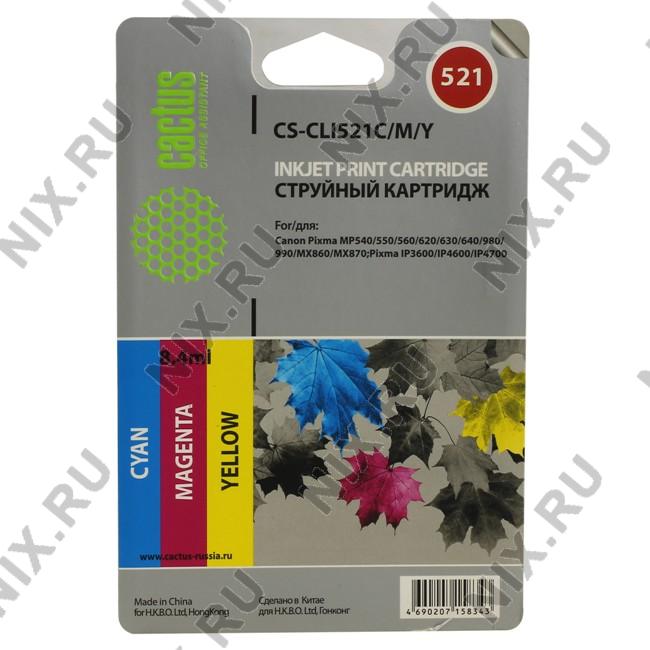Набор картриджей Cactus CS-CLI521C/M/Y для Canon PIXMA MP540/550/620/630/640/980/990,MX860, iP3600/4600/4700