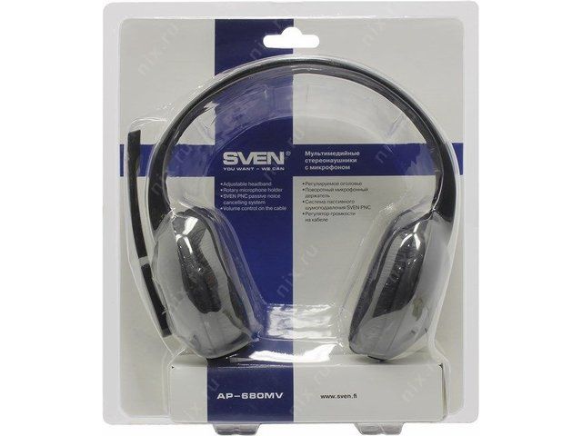 • Наушники с микрофоном SVEN AP-680MV Black-Blue (с регулятором громкости, шнур 2.5м)