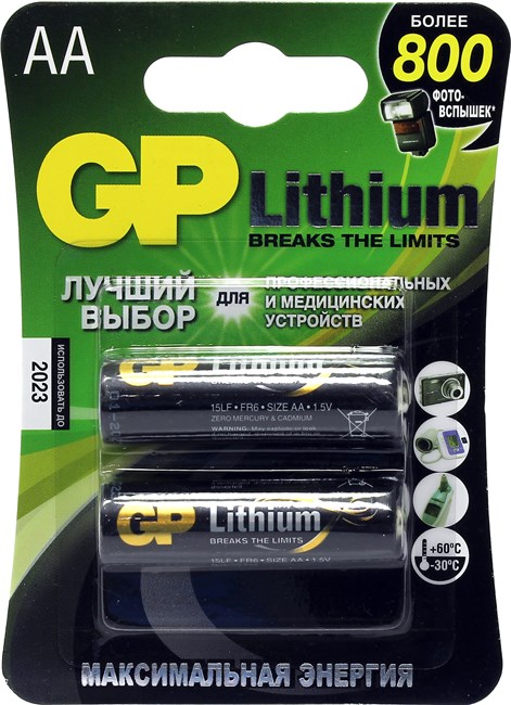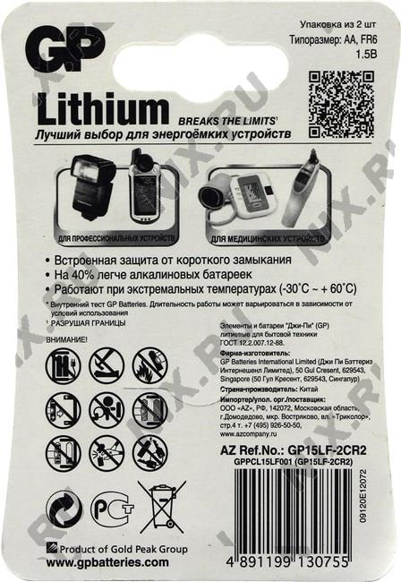 • GP GP15LF-2CR2, Size AA , 1.5V, Lithium  уп. 2 шт