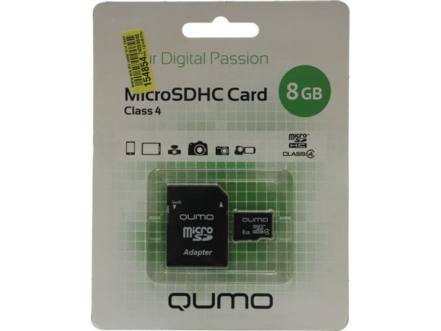 Qumo QM8GMICSDHC4 microSDHC 8Gb Class4 + microSD-- SD Adapter