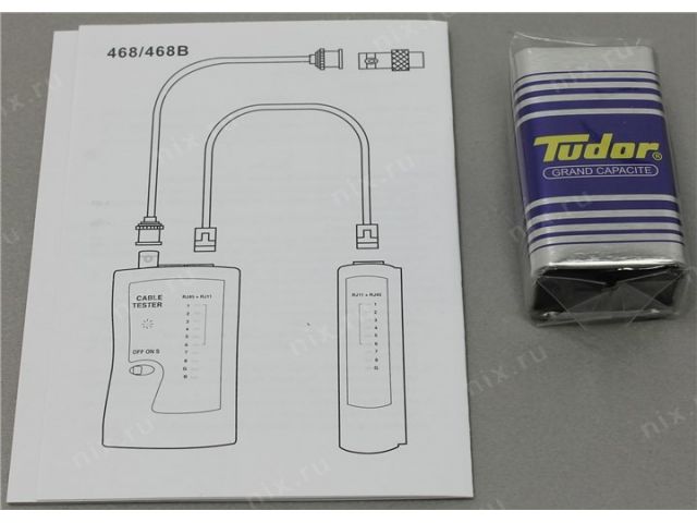 Питание1 батарейка 9V типа Крона для LAN-тестера входит в комплект поставки