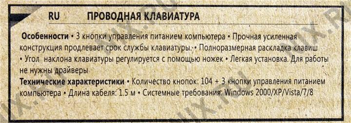 ПрочееКоличество клавиш - 104 шт., Тип клавиатуры - мембранная.