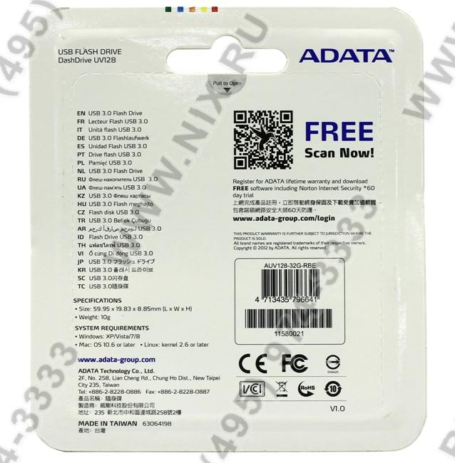 ADATA DashDrive UV128 AUV128-32G-RBE  USB3.0 Flash Drive 32Gb