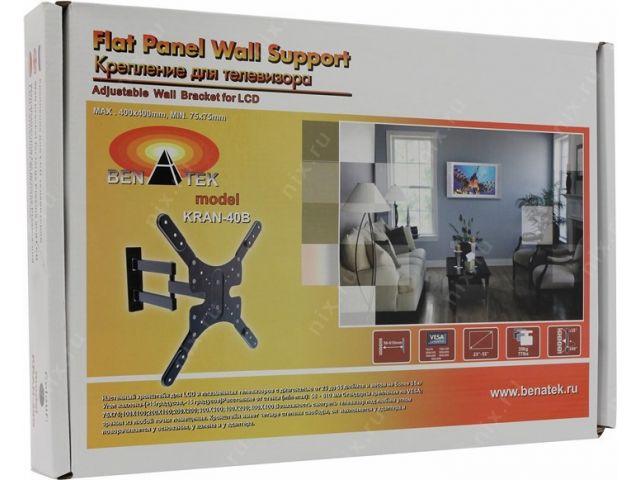 BENATEK KRAN-40B Black, Универсальное поворотное крепление(VESA75/100/200x100/200/300/400, 35кг)