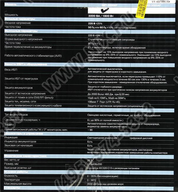 | AVR (Automatic Voltage Regulation - авторегулятор напряжения) | Есть. Увеличивает (до 15%) выходное напряжение при понижении входного напряжения на 9%-25% от номинального. Уменьшает (до 13%) выходное напряжение при повышении входного напряжения на 9%-25% от номинального. |