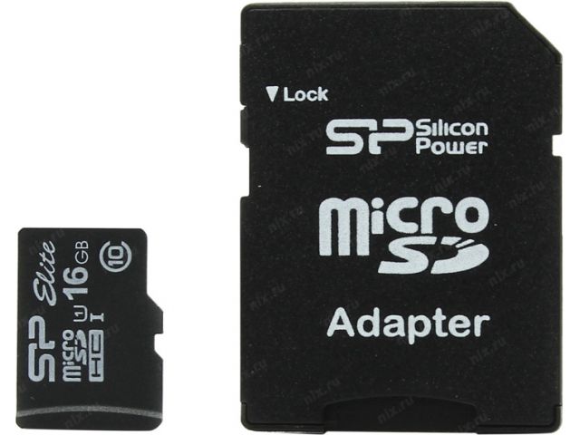• Silicon Power SP016GBSTHBU1V10-SP microSDHC Memory Card 16Gb UHS-I U1 + microSD-- SD Adapter