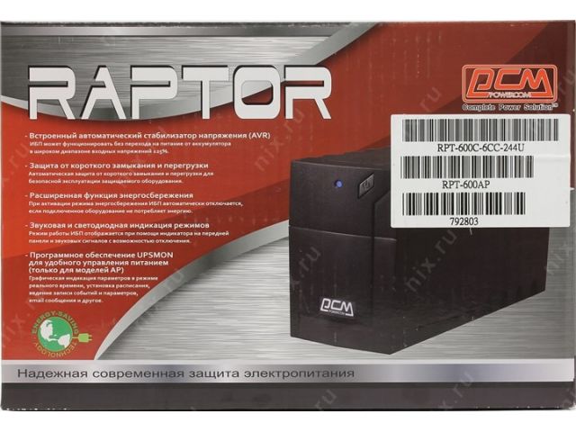 | ИБП PowerCom Raptor RPT-600AP |