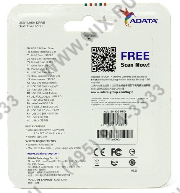 ADATA UV150 AUV150-32G-RRD  USB3.0 Flash Drive 32Gb