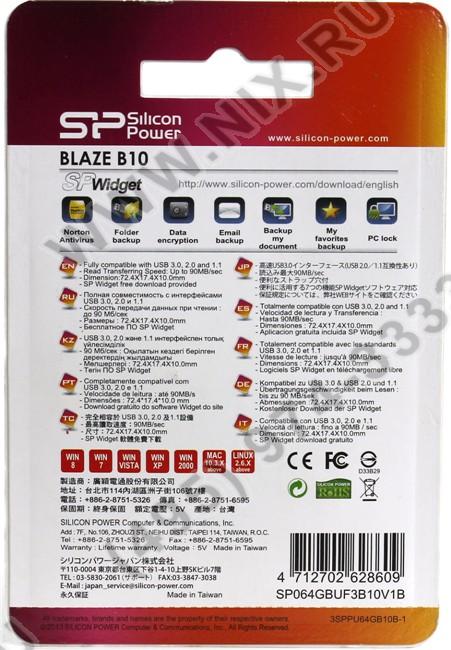 Silicon Power Blaze B10 SP064GBUF3B10V1B USB3.0 Flash Drive 64Gb (RTL)