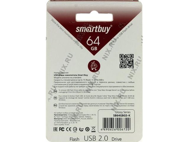 • SmartBuy Glossy SB64GBGS-K USB2.0 Flash Drive 64Gb (RTL)