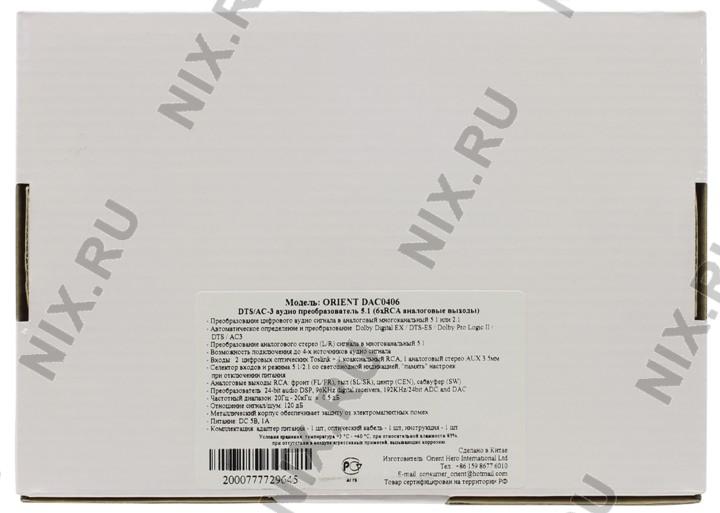 Orient  DAC0406(N) DTS/AC3 Digital Audio Decoder 5.1 (вх.2xSPDIF/Coaxial, вых. 6xRCA)