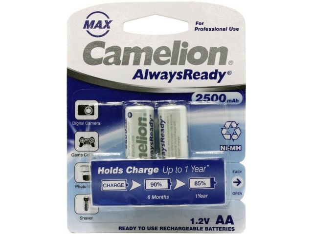 • Аккумулятор Camelion NH-AA2500AR-2 AlwaysReady (1.2V, 2500mAh) NiMH, Size AA  уп. 2 шт