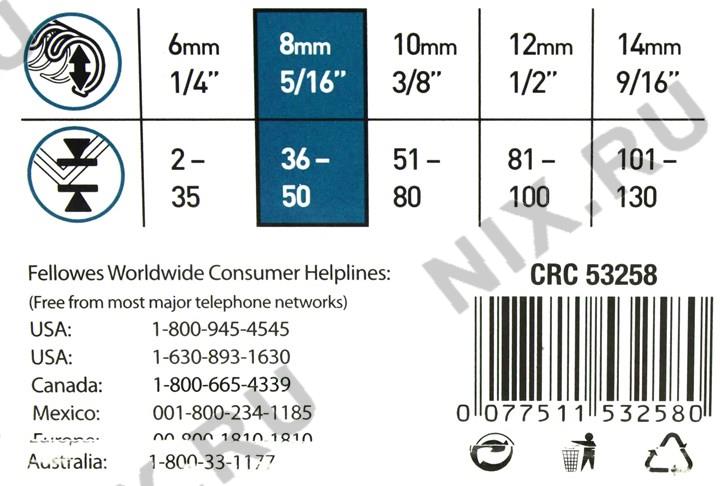 Fellowes 53258 Металлические гребенки для переплёта (White, A4, 34отв, d=8мм, уп.100шт)