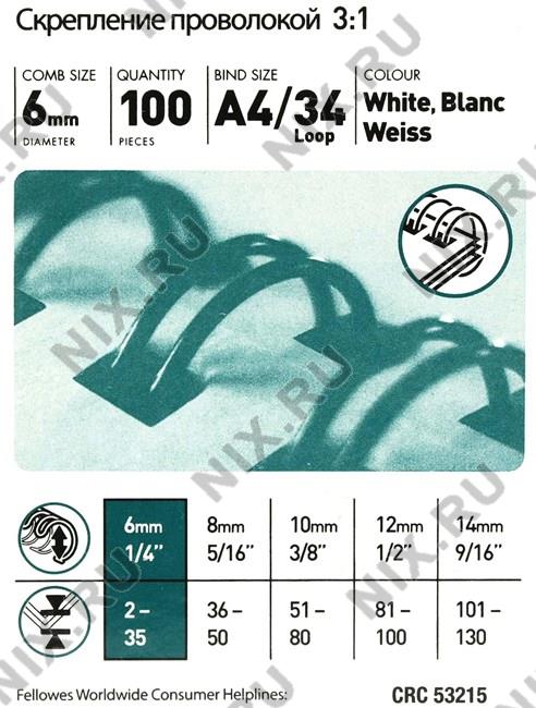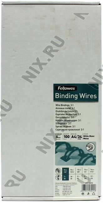 Fellowes 53215 Металлические гребенки для переплёта (White, A4, 34отв, d=6мм, уп.100шт)